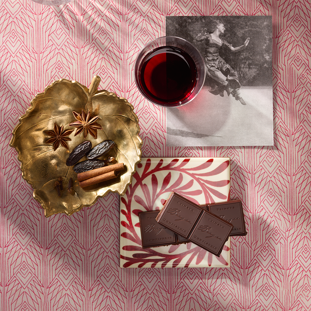 Ein berauschendes Genusserlebnis: Glühwein harmoniert mit herber Bio-Edelbitterschokolade und begleitet die Weihnachtszeit auf unwiderstehlich zarte Weise.